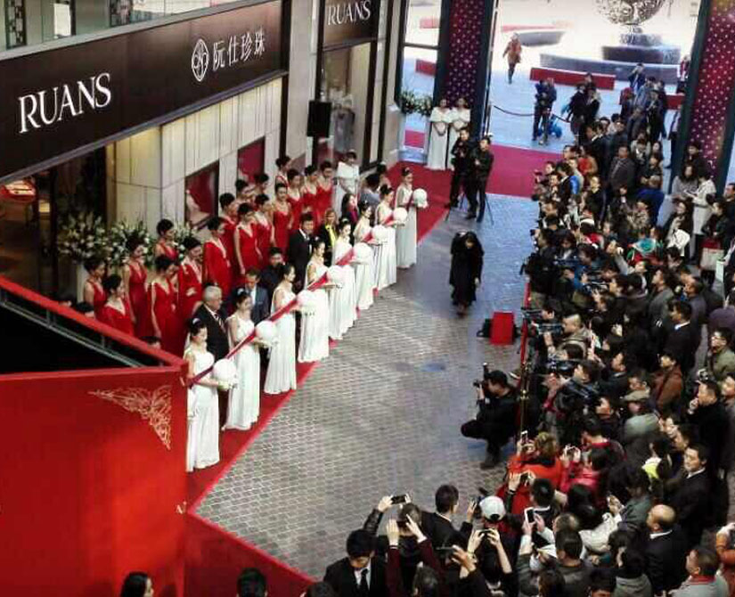 2014年11月,“阮仕珍珠·全球启幕”盛典在北京蓝色港湾国际商区隆重举行,宣布中国珍珠标志性的珠宝中心——阮仕珍珠蓝色港湾店华丽启航。全新亮相的阮仕珍珠蓝色港湾店,以近千件珍珠珠宝臻品和焕然一新的国际精品尊容体验,彰显其作为新晋国际知名奢华珠宝品牌的非凡实力,向世人展示了各种珍珠珠宝的无穷魅力和一个中国珠宝品牌的诚意与实力,成为助推中国珍珠品牌走向全球的新势力。